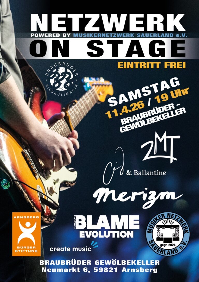 Das Musikernetzwerk Sauerland e.V. setzt sich für die Förderung von Musiker*innen und musikalischen Projekten in der Region Sauerland ein. Egal ob Solokünstler, Bands oder Veranstalter: Wir unterstützen Musikbegeistere dabei, ihre musikalischen Ziele zu erreichen. Durch gezielte Förderprogramme, Workshops und Veranstaltungen bieten wir Musikschaffenden eine Plattform zur Weiterentwicklung und Entfaltung. Gemeinsam schaffen wir Perspektiven, um die musikalische Landschaft im Sauerland lebendig und vielfältig zu gestalten.